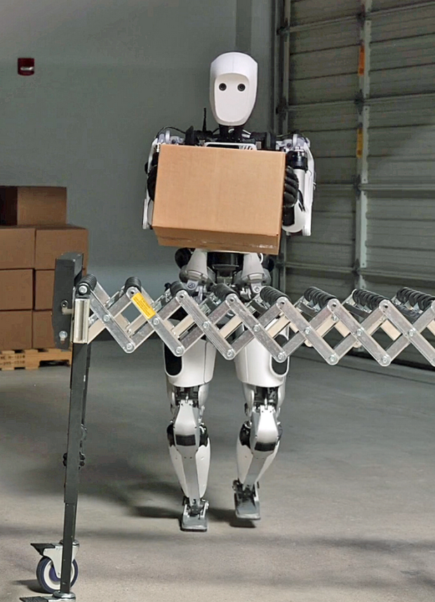 Apollo, an all-electric bipedal humanoid robot made by Austin-based Apptronik, was unveiled August 23. Apollo is 5 feet, 8 inches tall, weighs 160 pounds and can lift 55 pounds. "Science fiction has promised us these for a long time," said Apptronik CEO Jeff Cardenas. "Initially, it's going to start working in the supply chain — doing basic material handling tasks, moving boxes and totes. Long term, really the sky's the limit in terms of what these types of systems will be able to do. …Right now we have two Apollos that are built, and we're building another four. These are the alpha units ...our engineering validation prototypes. The next step will be producing beta units — fewer than 100 — which will work outside the lab. From there, we move into full production, by the end of 2024." Apptronik, with 85 employees, came out of the Human Centered Robotics Lab at the University of Texas, and also worked on NASA's first bipedal robot, Valkyrie. Watch a video here. Details at Axios.com. Our thanks to Gene Beley for his assistance sourcing this report.